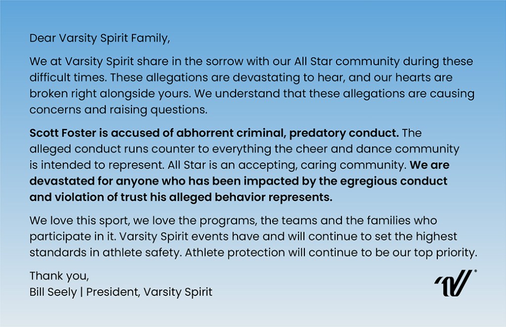 https://twitter.com/VarsityAllStar/status/1565415647751901184?ref_src=twsrc%5Etfw%7Ctwcamp%5Etweetembed%7Ctwterm%5E1565415647751901184%7Ctwgr%5E19466573b627c370d8165b40aa74044fb6ba7101%7Ctwcon%5Es1_&ref_url=https%3A%2F%2Fwww.foxcarolina.com%2F2022%2F09%2F01%2Fcheer-organization-releases-statement-allegations-against-rockstar-founder%2F